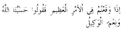 "Büyük zorluklara dûçar olduğunuz zaman "Allah bize yeter. O ne güzel vekildir" zikr-i ce-mîlîne devam ediniz." (1)