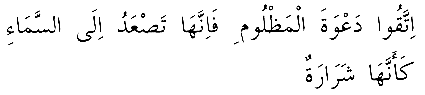 "Mazlumun bedduâsından sakınınız. Zîra bir kıvılcım sür'atiyle semâya icabete yükselir."