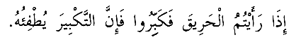 "Bir yerde yangın vuku' bulduğunu gördüğünüz zaman ''Allahü Ekber' diyerek tekrar tekrar tekbîr alınız. Zîra tekbir yangını söndürür." (14)
