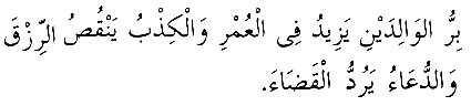 "Ana ve babaya iyilik ömrü artırır. Yalan söylemek rızkı noksanlaştırır, duâ kazaya siper olur." (16)