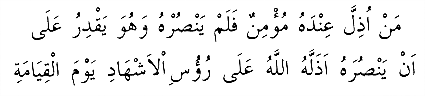 "Bir mü'mine yapılan zillet ve hakareti görüp de men'ine muktedir olduğu halde muâvenette bulunmayanları Cenab-ı Hak mahşerde zelîl eder." (18)