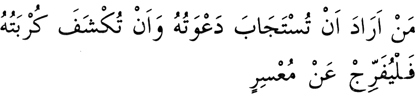 "Her kim duâlarının kabûlünü, gam ve üzüntülerinin def olup kaldırılmasını arzu ederse sıkıntıda bulunanların imdâdına yetişsin." (19)