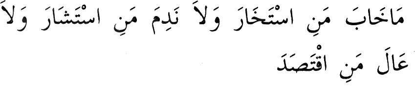 "İşlerde istihâre edenler, yani Allah'dan hayır dileyerek rızâsına muvafık hareket edenler zarar etmezler. İstişâre edenler de işin sonunda pişman olmazlar. İdâr-i maîşetinde isrâf etmeyip i'tidâl yolunu iltizâm edenler de fakr u zarurete düşmezler." (20)