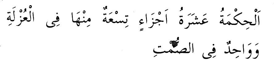"Hikmet on parçadır. Dokuzu uzlette, diğer biri de sükûttadır. Yâni mâlâyâniden, kendisini ilgilendirmeyen ve lüzumsuz bulunan şeylerden hıfzeylemektedir." (22)