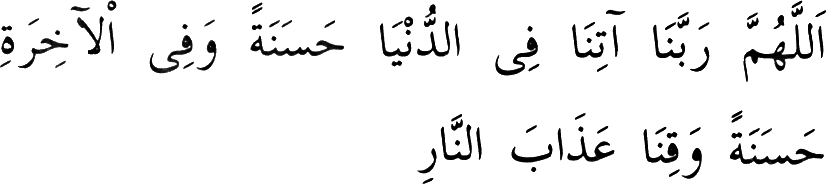 "Ey Rabbimiz, bize dünyâda da iyilik, güzellik ver, âhirette de iyilik, güzellik ver. Bizi ateş azâbından koru," meâlindeki duâ idi. (4)